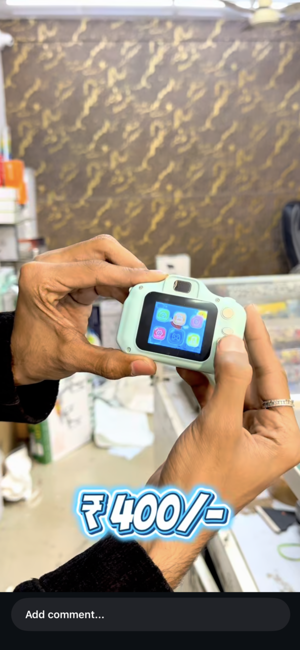 Home/Cameras/KIDS camera KIDS camera₹999.00 Original price was: ₹999.00.₹399.00Current price is: ₹399.00. KIDS camera quantity Add to cart Buy Now Description Games Camera Video camera Music player Additional information Weight 0.5 kg Dimensions 15 × 10 × 10 cm Description Additional information Games Camera Video camera Music player Weight 0.5 kg Dimensions 15 × 10 × 10 cm Related products SALE AIRPLANE RC AEROPLANE REMOTE CONTROL ₹3,500.00 Original price was: ₹3,500.00.₹1,500.00Current price is: ₹1,500.00. Add to cart SALE stunt car toy ₹3,000.00 Original price was: ₹3,000.00.₹1,200.00Current price is: ₹1,200.00. Add to cart SALE Breathing Teddy ₹999.00 Original price was: ₹999.00.₹299.00Current price is: ₹299.00. Add to cart SALE aircraft toy launcher ₹500.00 Original price was: ₹500.00.₹300.00Current price is: ₹300.00. Add to cart