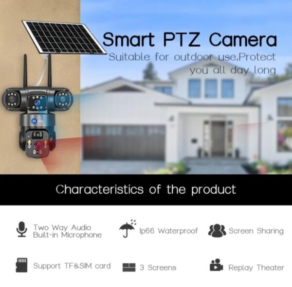 Crazy Smarthome 4g Solar 4MP High Resolution Pan & Tilt Zoom Smart Outdoor Security Camera with Night Vision, Motion Detection, Alarm, IP66 Rating & SD Card Support
